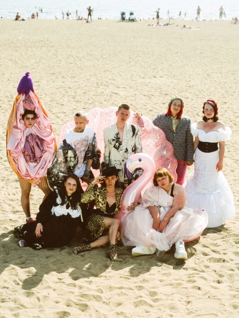 On the beach near St Petersburg. L-R: Nedos, Kate Messorosh, Dmitry, Roma Valero, Roman Gunt, Miliyollie, Masha and Masha, Mashino Hozyastvo. (Artem Emelianov)[/caption]