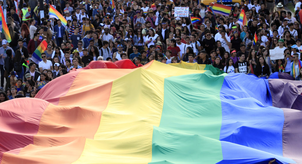 The LGBT+ community celebrates the commemoration of 50 years of Gay Pride worldwide as part of the pride day celebration on June 29, 2019 in Quito, Ecuador (Franklin Jácome/Agencia Press South/Getty Images)[/caption]