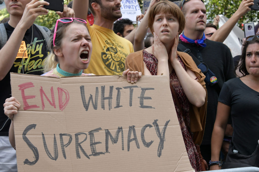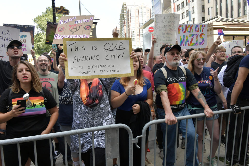"About 700 counter-protesters outside are drowning them out. Can’t hear anything."