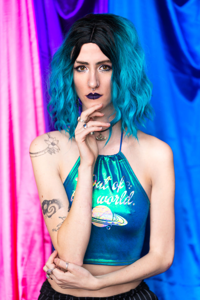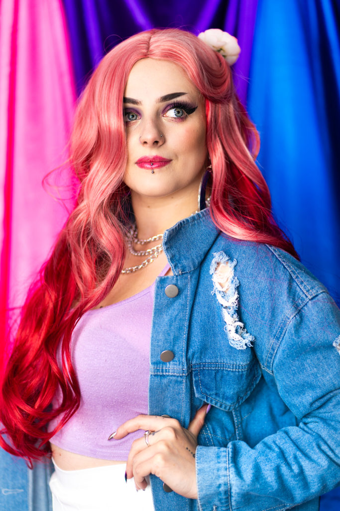 Behind the vibrant hues of pink, purple and blue, an array of beautiful bi folk modelled behind Ayla Carli's camera.