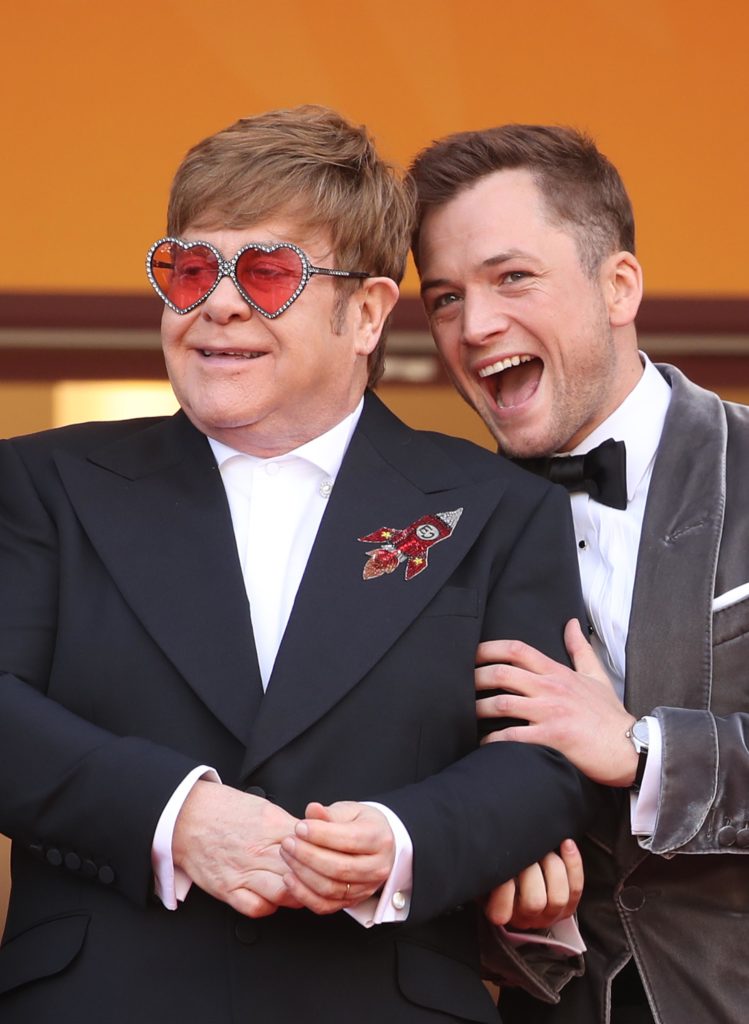 CANNES, FRANCE - MAY 16: Sir Elton John and Taron Egerton attends the screening of "Rocketman" during the 72nd annual Cannes Film Festival on May 16, 2019 in Cannes, France. (Photo by Mike Marsland/WireImage)[/caption]