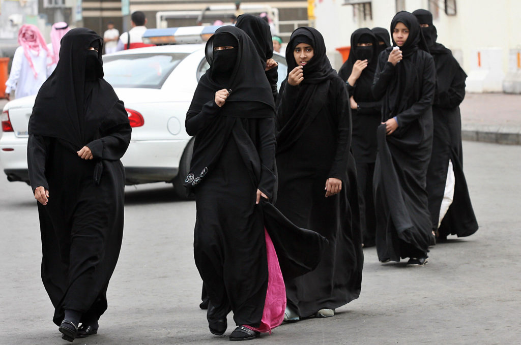 Saudi women cross a street in the holy city of Mecca in Saudi Arabia (HASSAN AMMAR/AFP/Getty)[/caption]