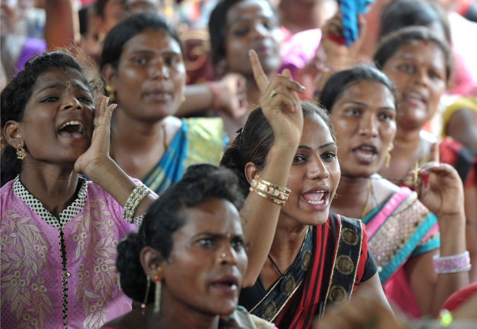 Indian transgender activists protest against the Trangender Persons (Protection of Rights) Bill in Hyderabad on August 26, 2016. (Getty)[/caption]