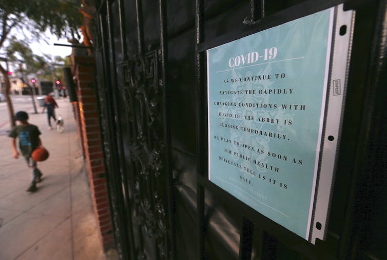 The Abbey, one of Los Angeles’ most famous gay bars, announces its temporary closure due to the coronavirus pandemic (Luis Sinco/Los Angeles Times/Getty)[/caption]