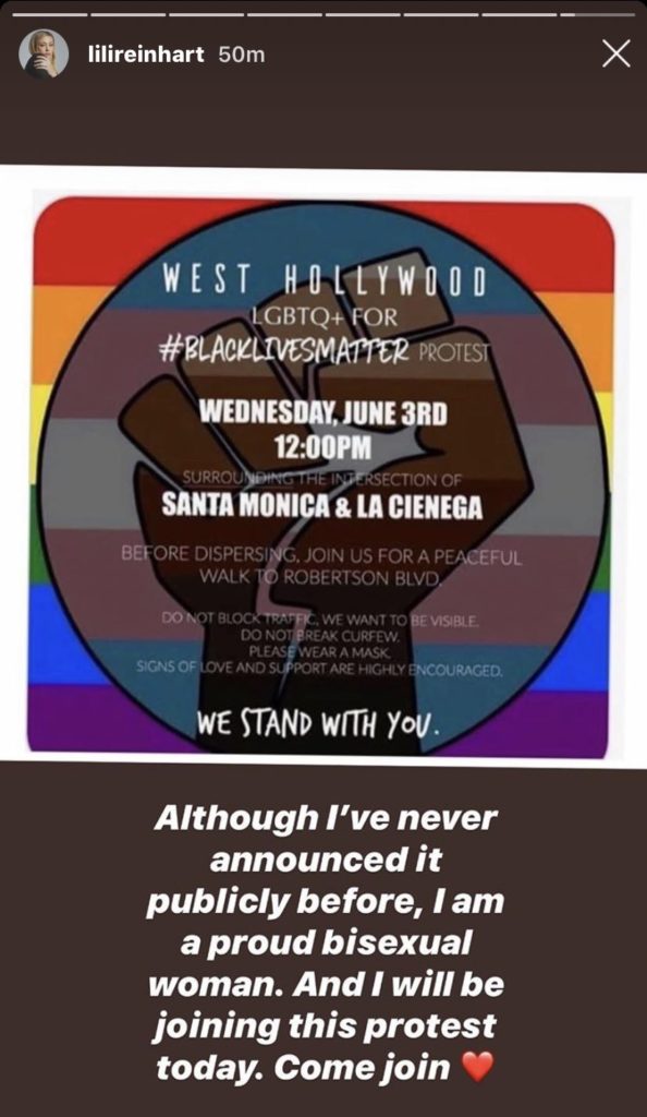 Lili Reinhart revealed Wednesday (June 3) that she is bisexual while promoting a Black Lives Matter protest.