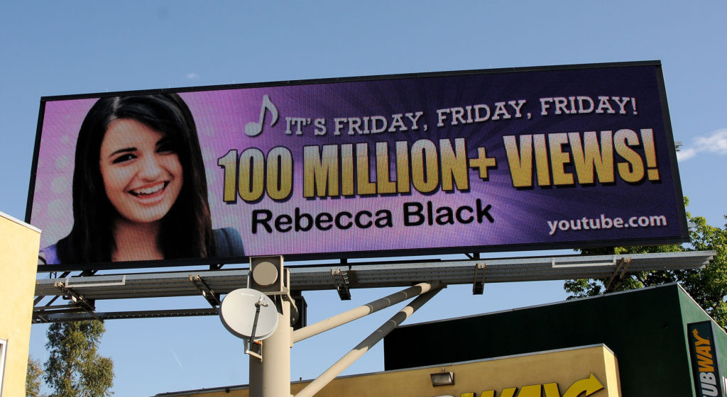 Rebecca Black "Friday" billboard unveiling ceremony on April 15, 2011 in Los Angeles, California. (Mark Sullivan/WireImage)[/caption]