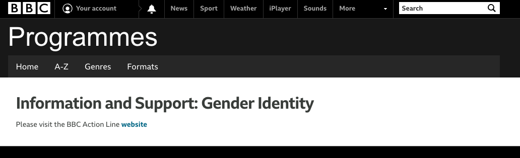 The BBC information and support page on gender identity now contains no information or support.[/caption]