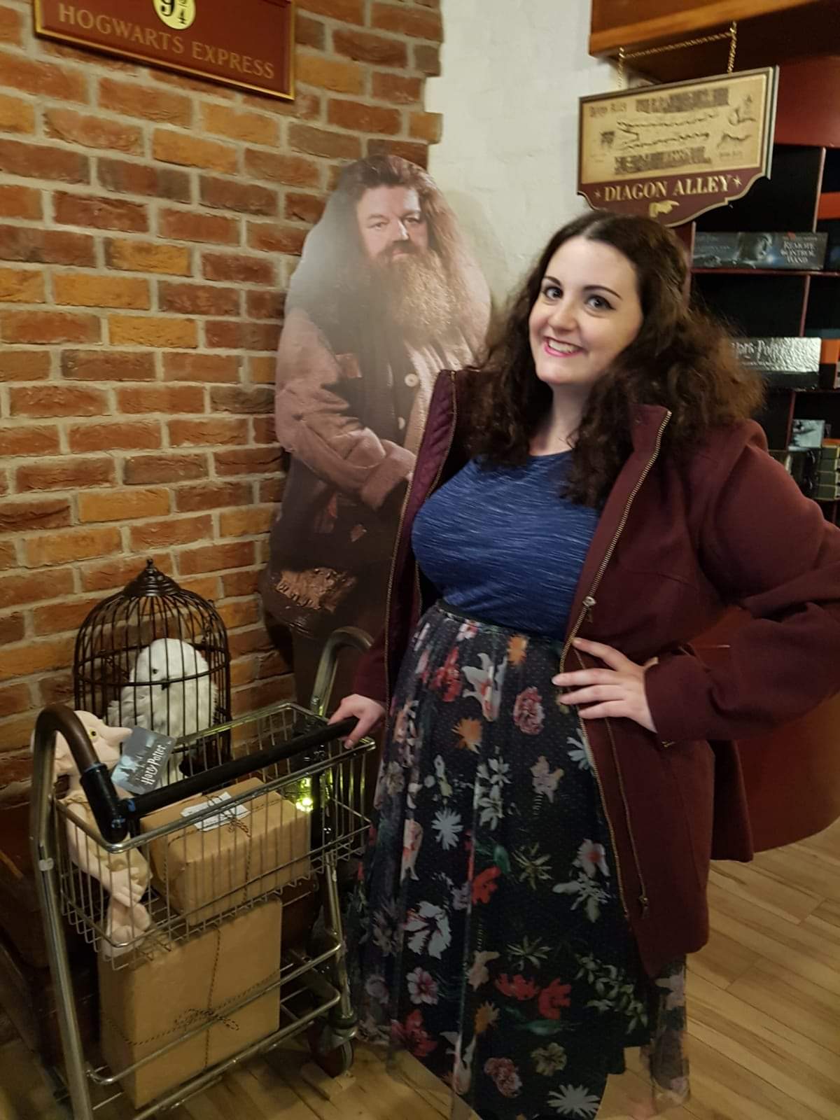 Mica posing with Hagrid at a Harry Potter shop in Shrewsbury (Image supplied)[/caption]