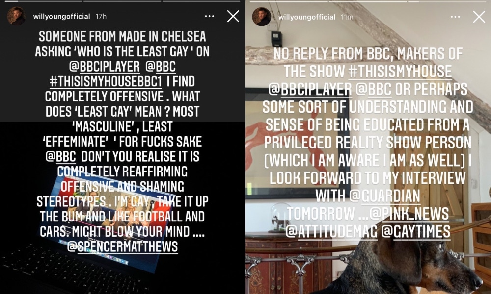Watching the show on Sunday night (18 April) Will Young immediately took to Instagram to slam Spencer Matthews for " reaffirming offensive and harmful stereotypes " about gay people.