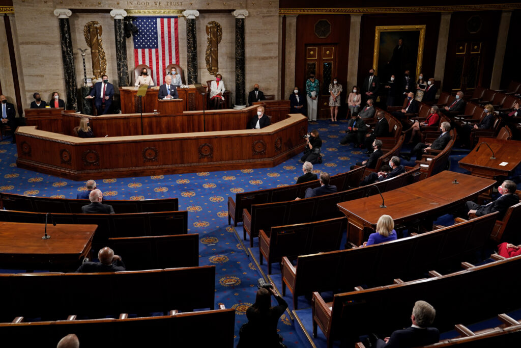 President Joe Biden speaks to a joint session of Congress in the House chamber of the US Capitol. (Doug Mills-Pool/Getty Images)[/caption]