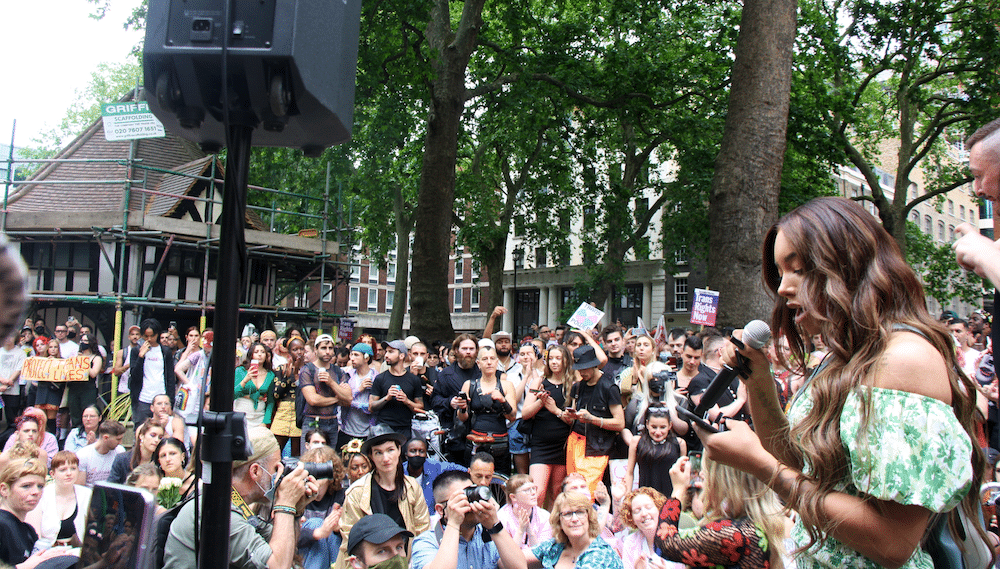 Lastly, Munroe Bergdorf asked the crowd to join her in saying: "F**k the Tories." The crowd obliged, loudly.
