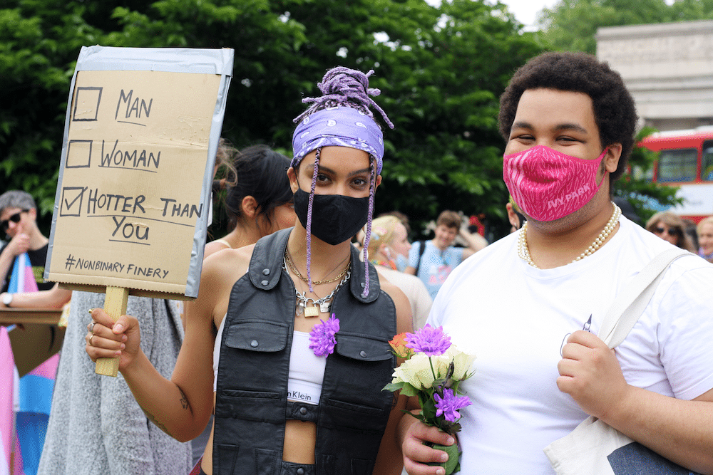 Thousands of trans and non-binary people and their allies took to the streets of central London today to fight for trans liberation.