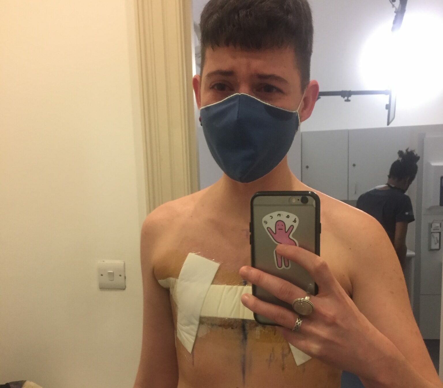 Due to a cancellation, I had top surgery less than a month later, in February 2021 – with just eight days notice of my surgery date. I work somewhere with an HR transition policy that gives trans employees paid time off for surgery recovery and specifically advises giving trans workers flexibility if surgery dates come up at short notice – something all trans people should have access to, though few do. I am also lucky that my job reporting on trans healthcare could include documenting my top surgery, in return for a discount with The London Transgender Clinic.