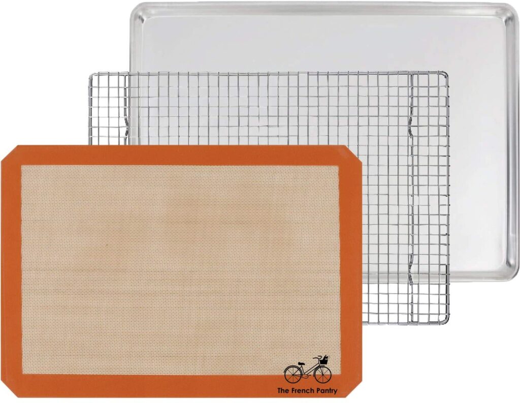 You can also get this three-piece cookie sheet set featuring an aluminum sheet pan, silicone baking mat and stainless cooling rack for your bakes. This particular set is extra large, so you might need to check the measurements of your oven before purchasing these items and if they're too big or small then shop around for similar ones that will fit. To get this three-piece set head to Amazon here . Meanwhile there's plenty of others to choose from here .