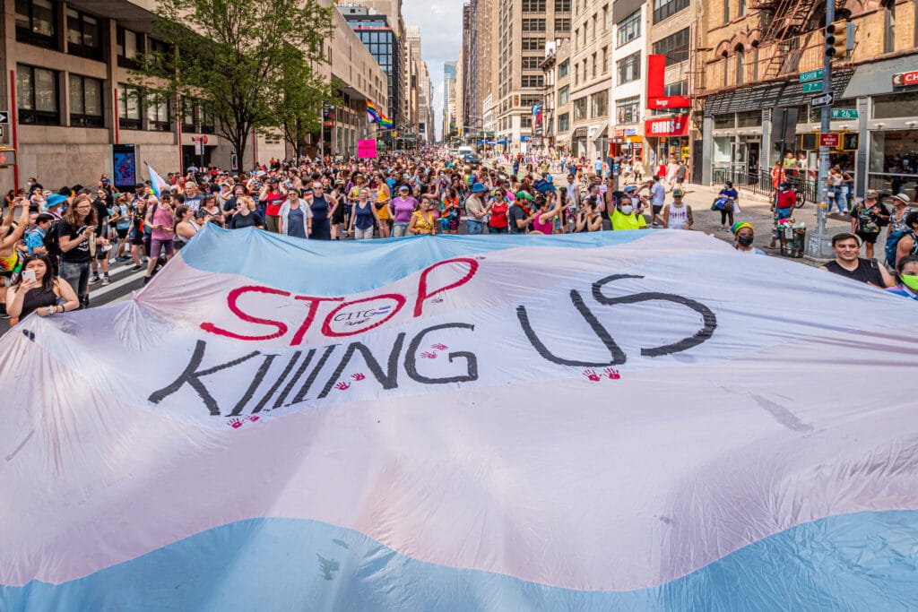 Trans women, particularly Black women, face disproportionate rates of violence. (Michael M. Santiago/Getty Images)[/caption]