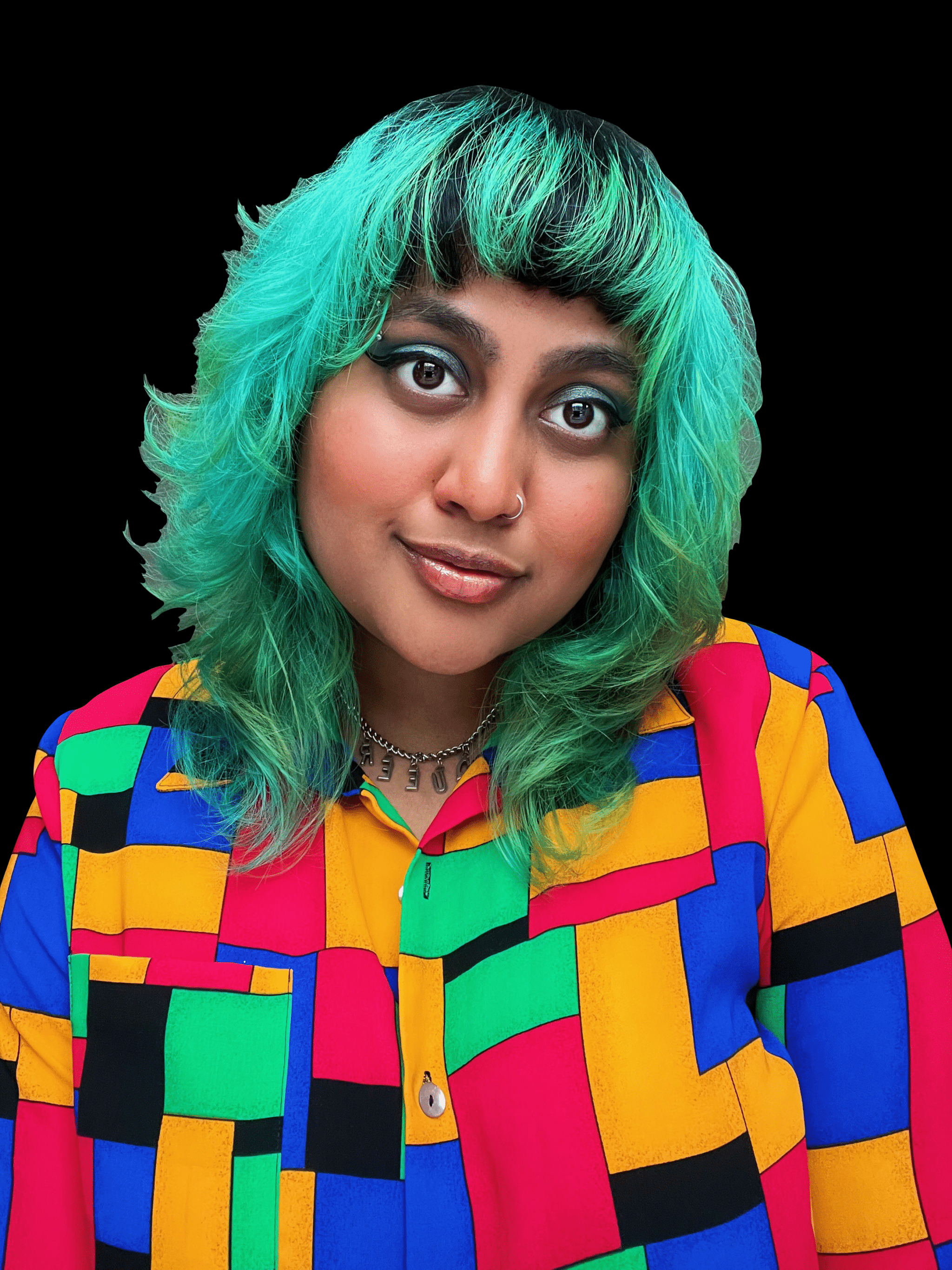 Prishita: A moment of joy that I've experienced with my hair and my gender was actually at Trans Pride this year. It was one or two days before that I got my hair cut into a kind of mullet-y shag. It had grown out from a mullet and I got it cut differently. And I got it re-dyed. It was green and blue, had like green bits in the front, and then the rest of it was blue. And I just felt like that was one of the first times after lockdown and COVID and everything that's happened in the last year and a half where I was part of the community, I was out there, and it was my first Trans Pride as an out non-binary person as well. It was the first time that I was presenting as myself in a way that felt really authentic to who I am and how I wanted to express myself.