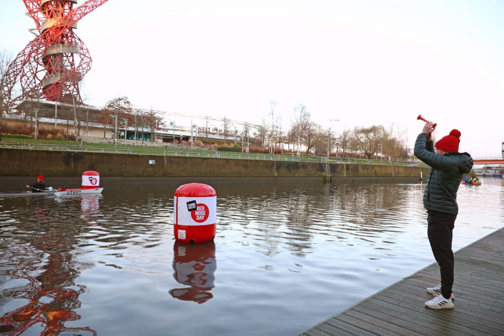 Diver Matty Lee sends off Tom Daley from Stratford, London (Jordan Mansfield/ Comic Relief via Getty Images)[/caption]