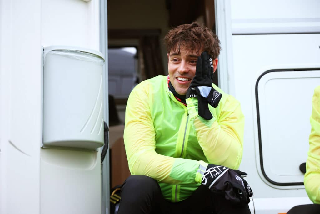 Tom Daley takes a break during a cycle leg (Jordan Mansfield/Comic Relief via Getty Images)[/caption]