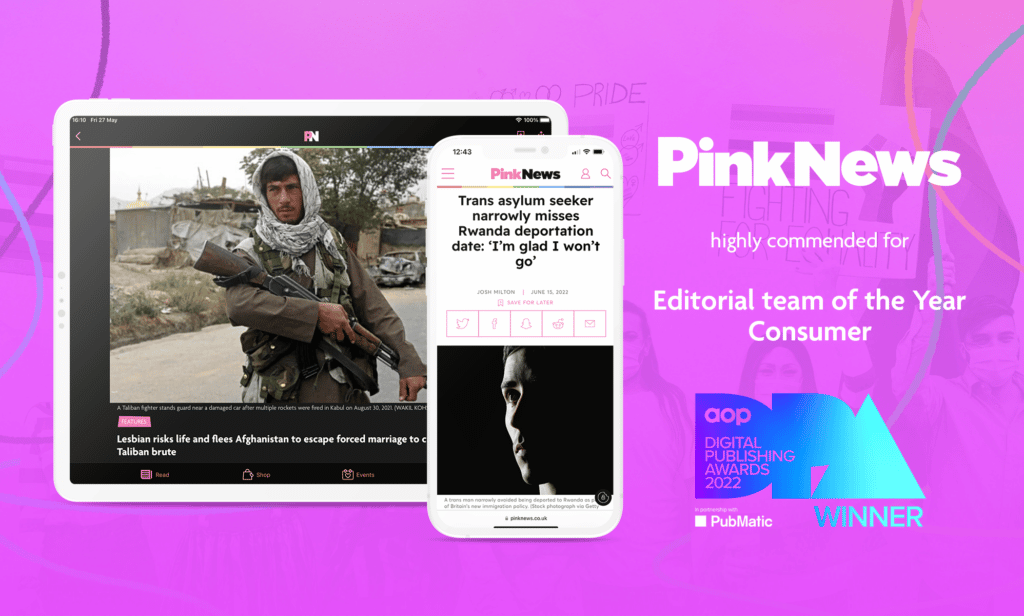 And PinkNews' editorial content, which included in-depth coverage of how the Taliban take-over of Afghanistan threw LGBTQ+ people into jeopardy, received a big nod from the panel.