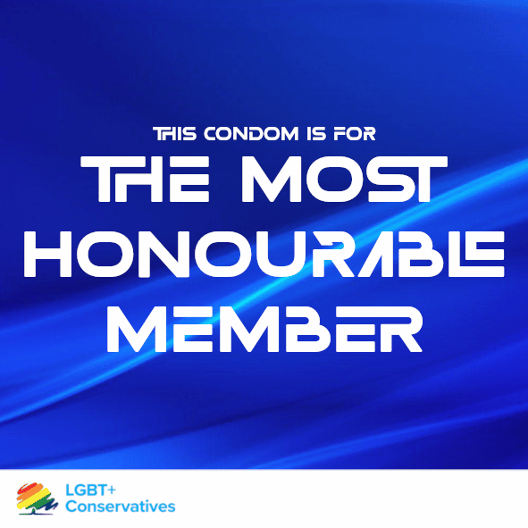 "Strong & Stable". "Honourable Member". These are just two of the slogans you'll find on the LGBT+ Conservatives' limited-edition condoms and dental dams.