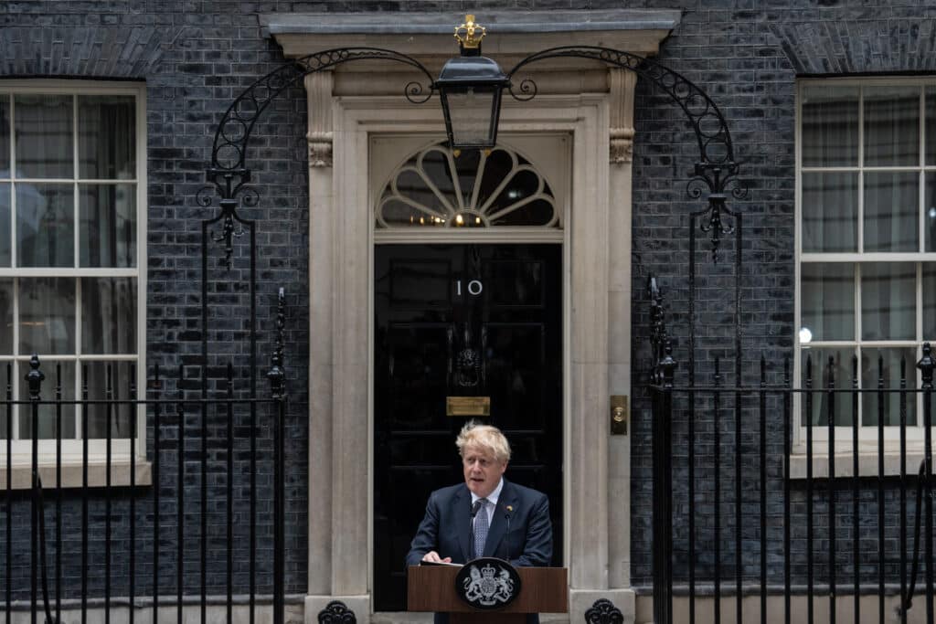 Boris Johnson stepped down as Conservative Party leader after several scandals prompted a wave of resignations from his top officials. (Carl Court/Getty Images)[/caption]