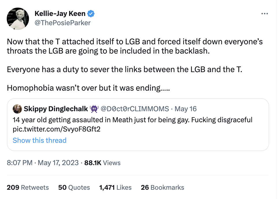 “Everyone has a duty to sever the links between the LGB and the T.”