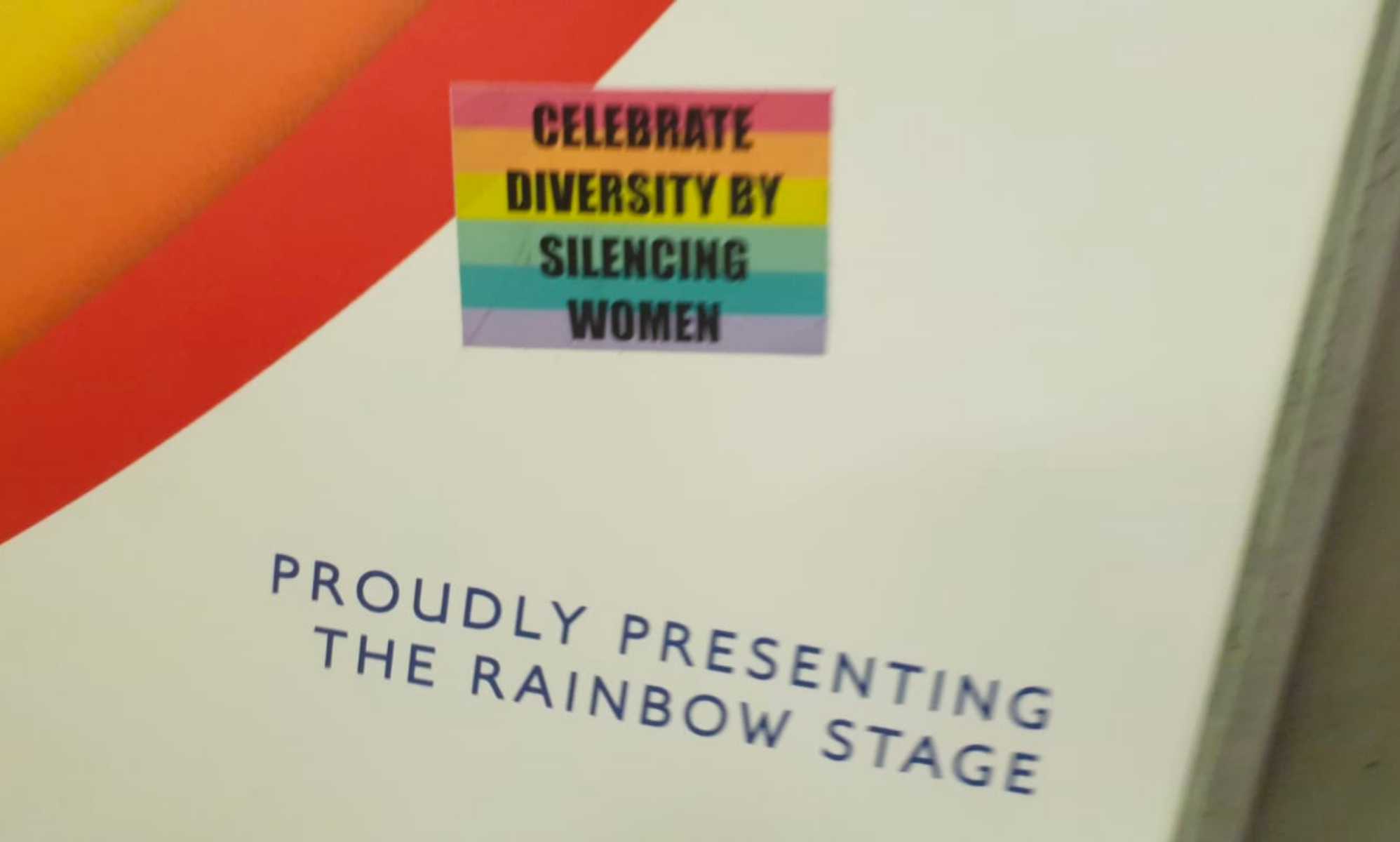 The stickers are in reference to the notion by so-called gender critical activists that trans rights and women’s rights are mutually exclusive.
