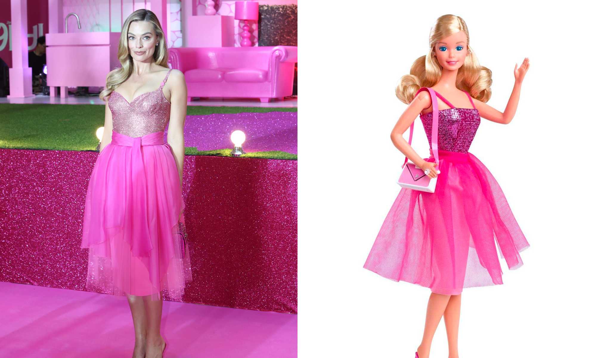 As excitement builds for the summer blockbuster, we've compiled a list of all the classic Barbie references Robbie has incorporated into her wardrobe as part of Barbie's plastic fantastic press tour, complete with the original Barbie dolls she's paying homage to.