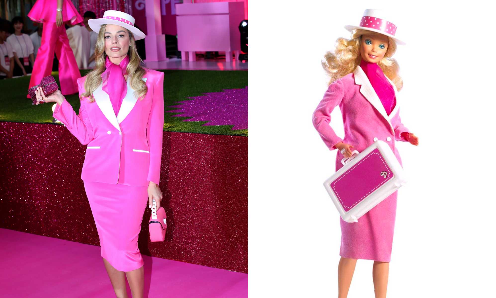 That is to say, as the pinker-than-previously-thought-possible film continues its worldwide press tour, Robbie has been rocking up to each event with a wardrobe stacked full of references to original Barbie dolls and their iconic costumes.