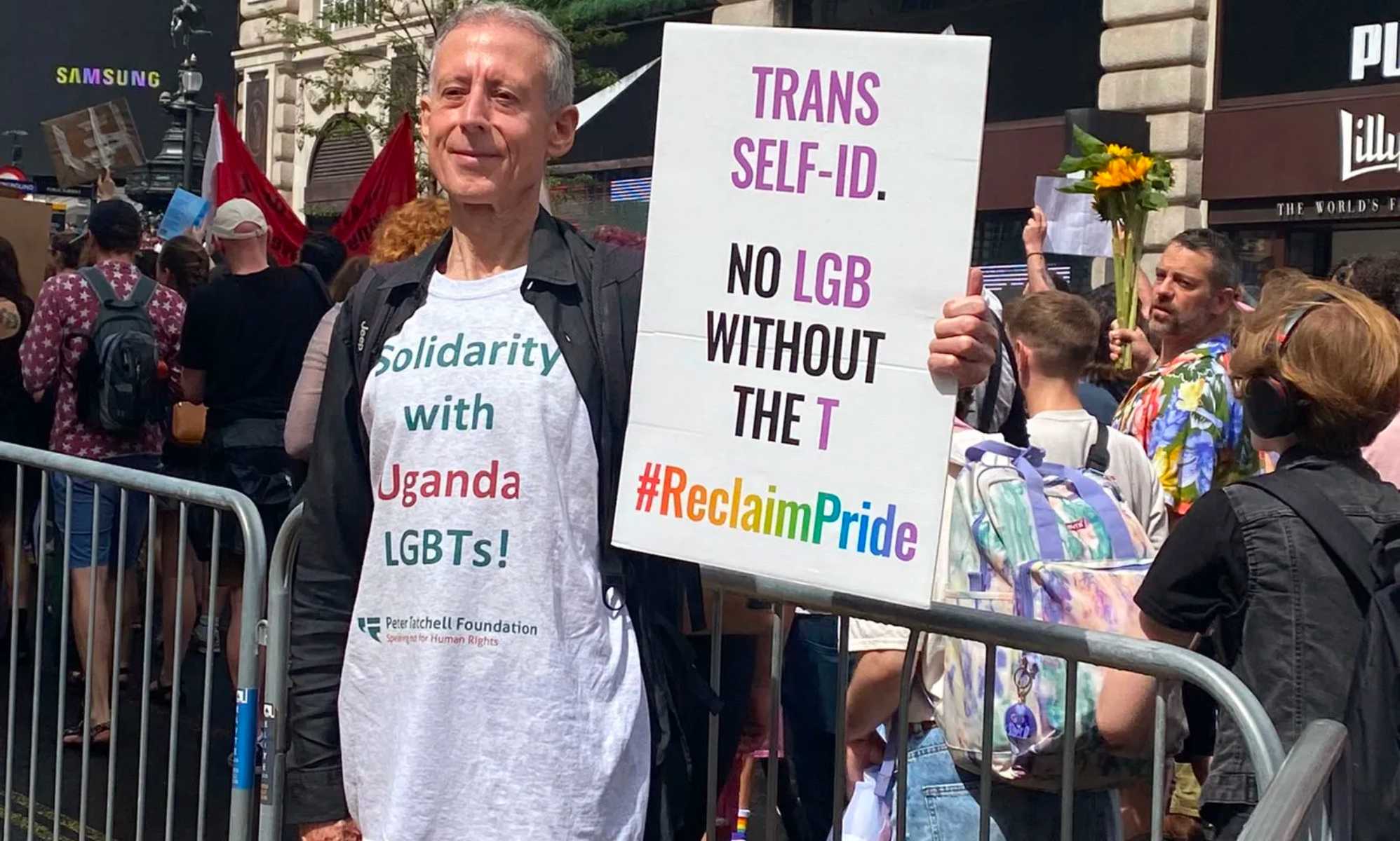In addition, veteran activist Peter Tatchell was photographed holding a placard which called for self-ID for trans people.