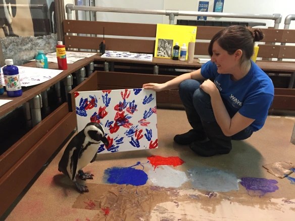 Green Bean is also a talented painter, as are some of her feathered friends. Newport Aquarium creates artworks by allowing the penguins to run through paint and over paper, elaborating: "Enrichment is about providing animals with stimulating and challenging environments, objects and activities. It aims to enhance their activity and provides mental stimulation for the penguins. Who wouldn’t have fun stomping and splattering in paint?!"