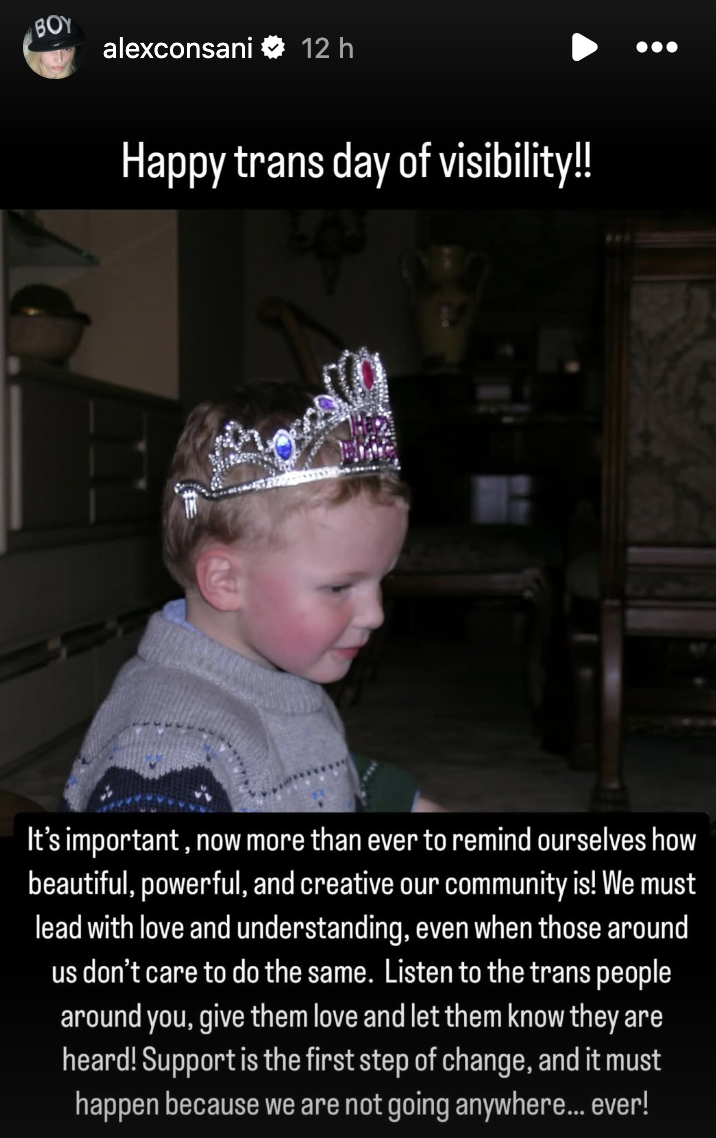 Consani wrote, "Happy trans day of visibility," above a photo of the model as a young child on her social media.