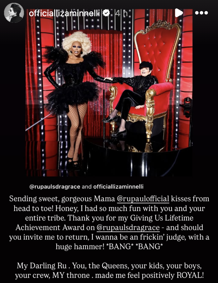 Mama @RuPaul will present the legendary Liza Minnelli with the Giving Us Lifetime Achievement Award at the #DragRace Season 17 finale ✨ pic.twitter.com/rIVJpnzGVR