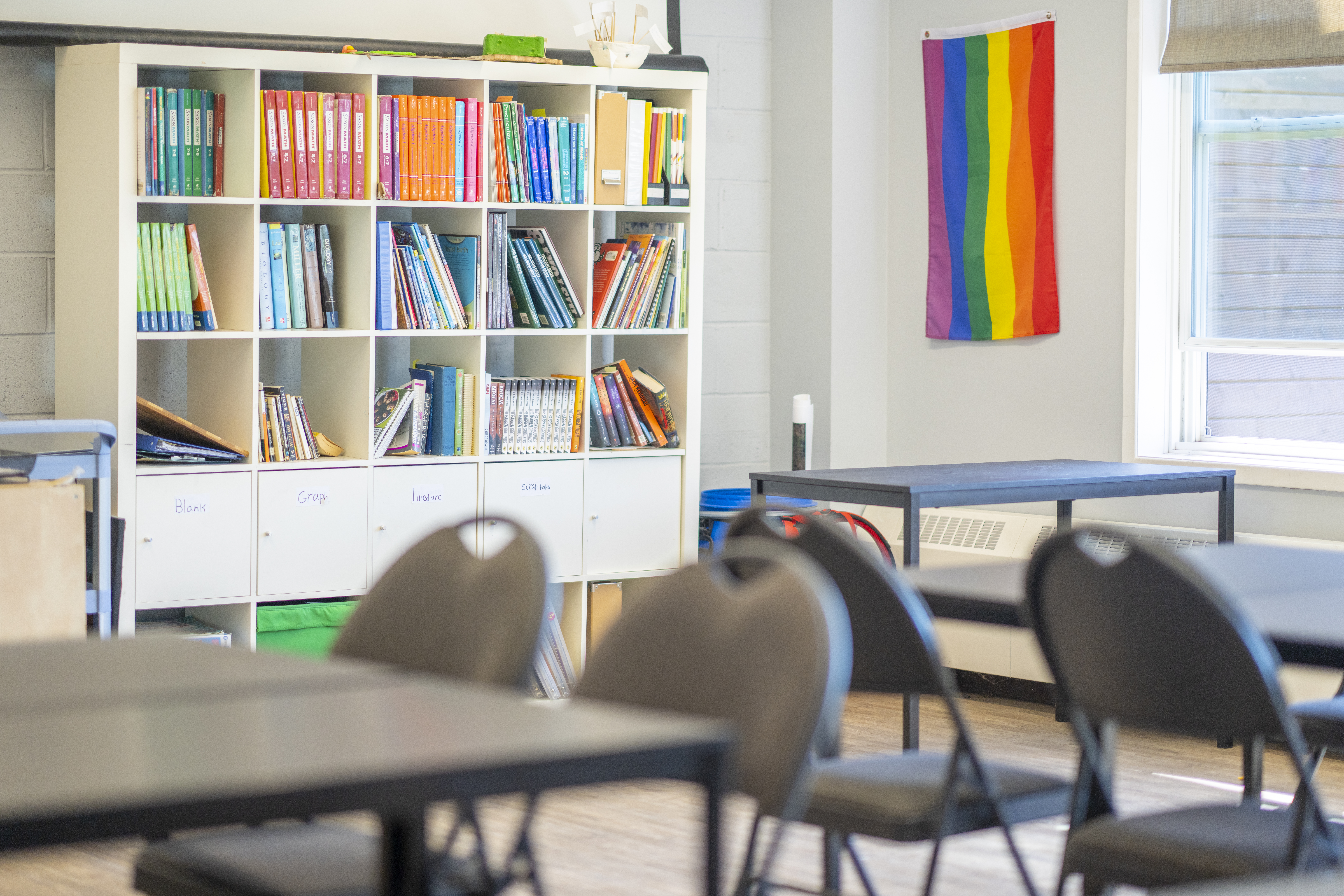 The school board polcy states that: “Principals and teachers shall limit displays in the classrooms, school buildings, ball fields, school grounds, and buses, such as signs and flags, to materials that represent the United States, the state of North Carolina, Johnston County, the school name, mascot, post-secondary institutions, school-sponsored events, sponsorships, military flags, family photos, student art and/or the approved curriculum.”