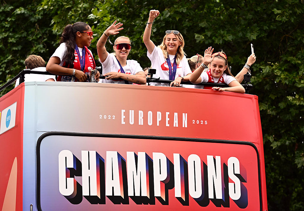 The parade was held to mark England's victory over world champions Spain in the final of the Women's Euros on Sunday evening (27 July). The game finished 1-1 after extra time and Kelly scored the decisive spot kick as the Lionesses won the penalty shootout 3-1.