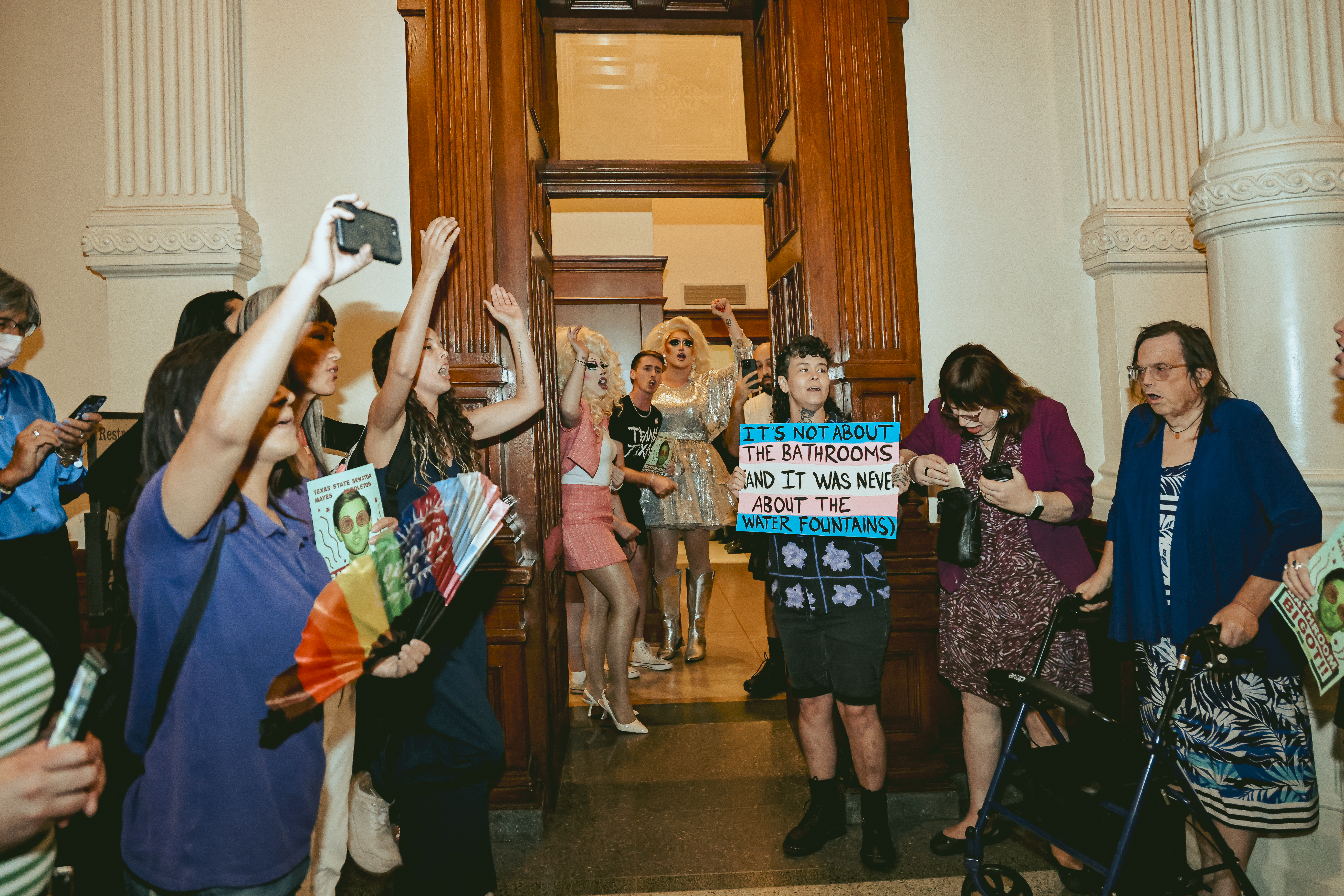 Trans activists occupy toilets in Texas state capitol building to protest 'bigoted' bathroom bill