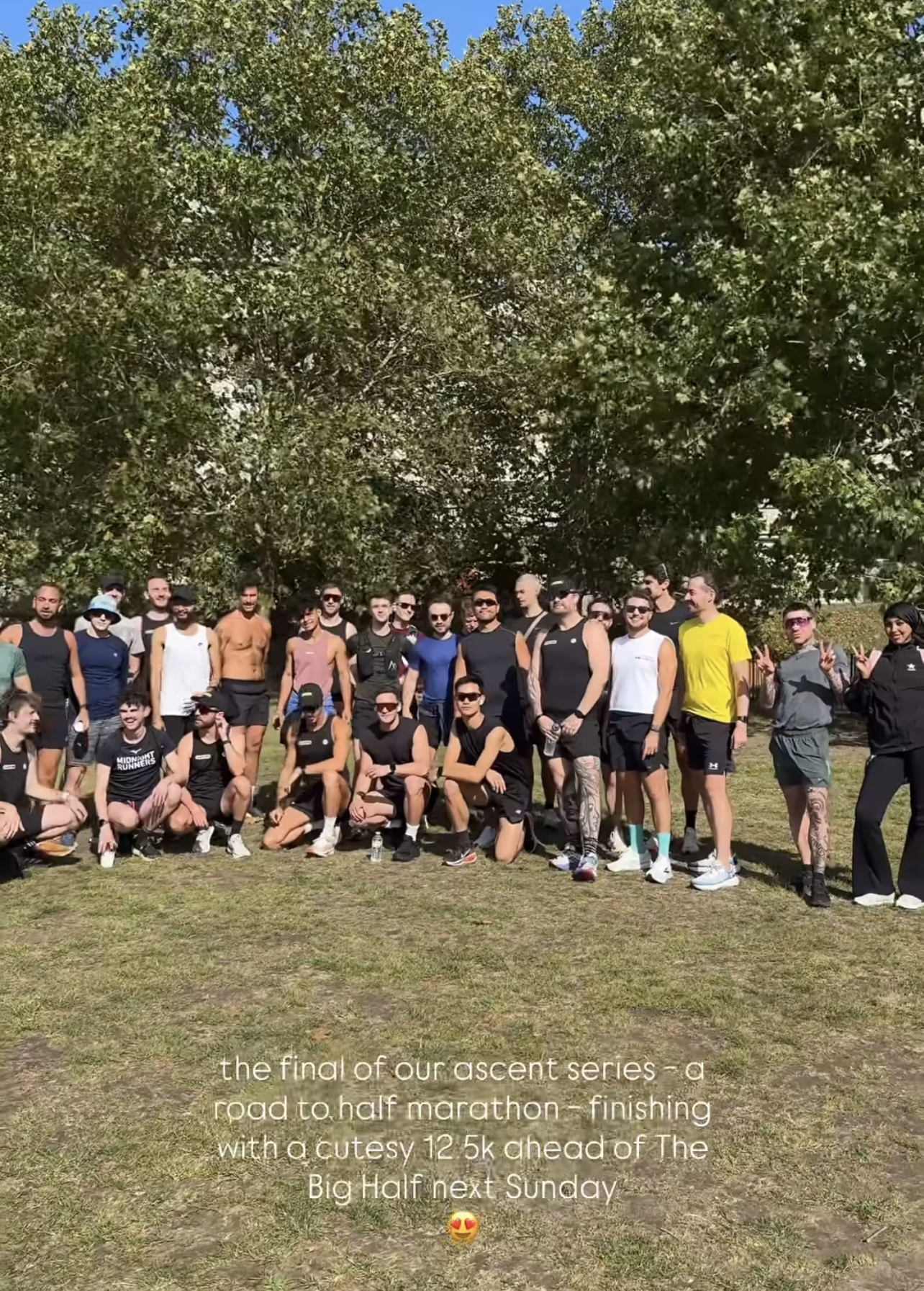 "I acc kept looking for my group until I clocked that I signed up for something that I didn't know about, they were so lovely and welcoming tho I just didn't really fit in clearly," she wrote as the post's caption, with text overlay reading: "The lore behind me signing up for a gay men marathon club accidentally."