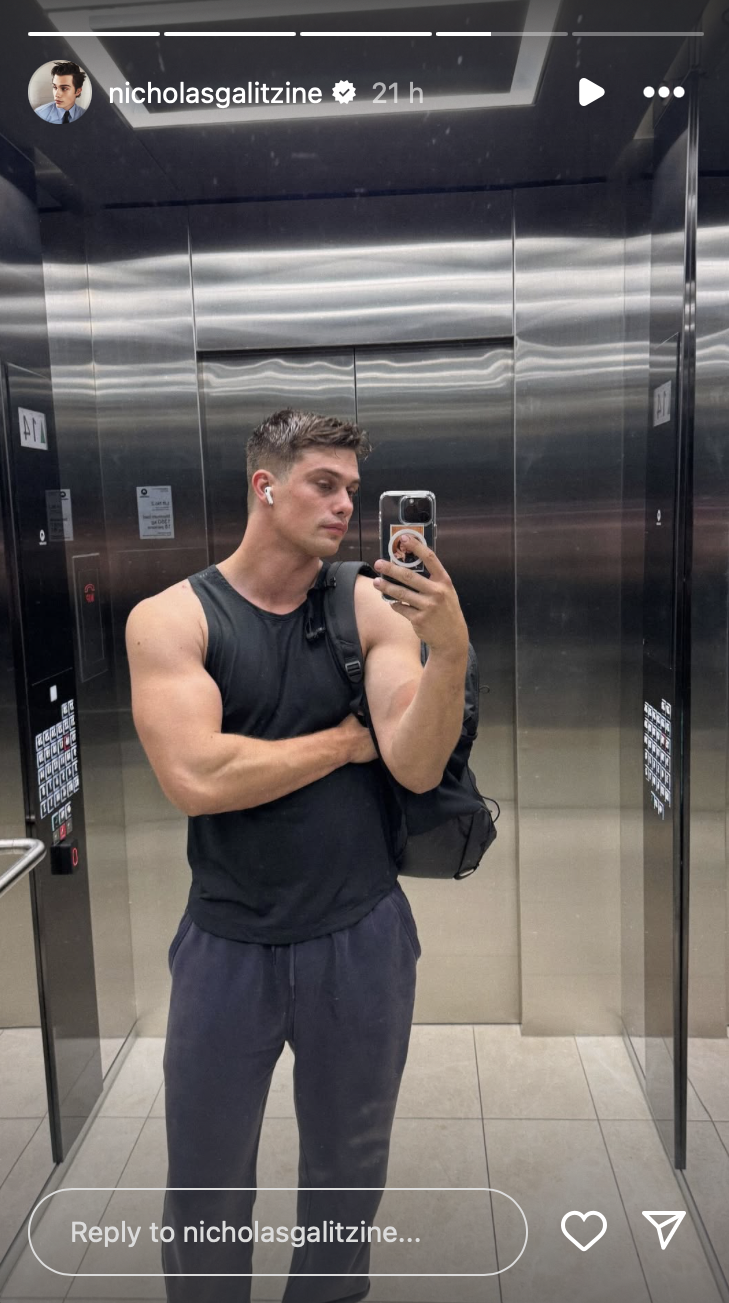 But it was an image the actor shared on his Instagram stories that has attracted a lot of attention from the gay corners of the internet. Wearing loose joggers and a tank top, he showed off his impressive biceps while riding in a lift.