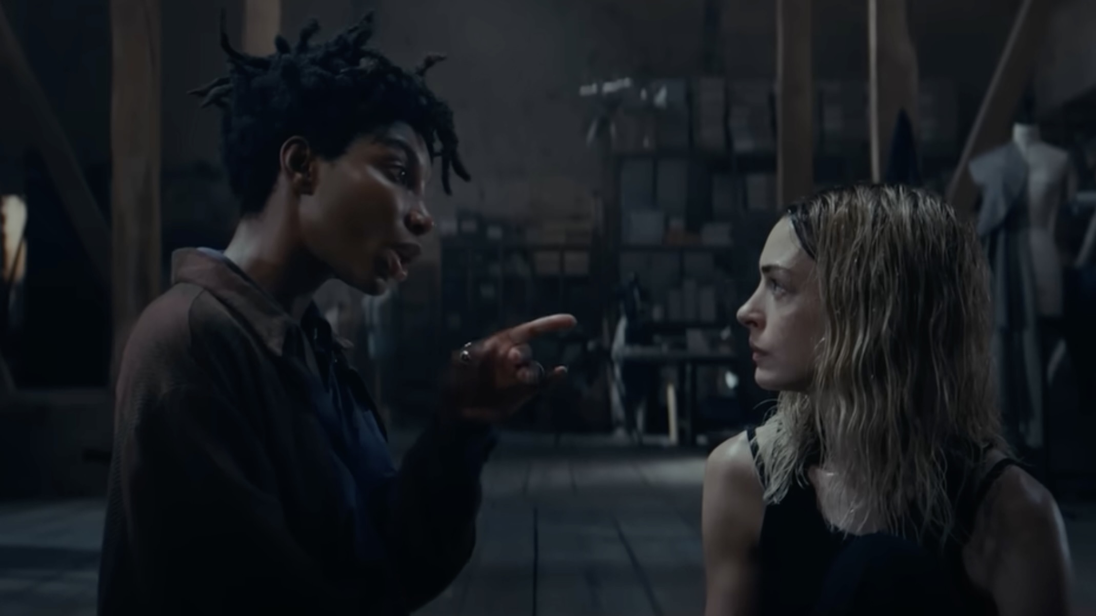 "Mother Mary, we're reinventing you," Sam can be heard saying in a creepily flat tone. Between flashes of Hathaway running and screaming, the actress can be seen embracing and kissing FKA Twigs, who is also in the cast.