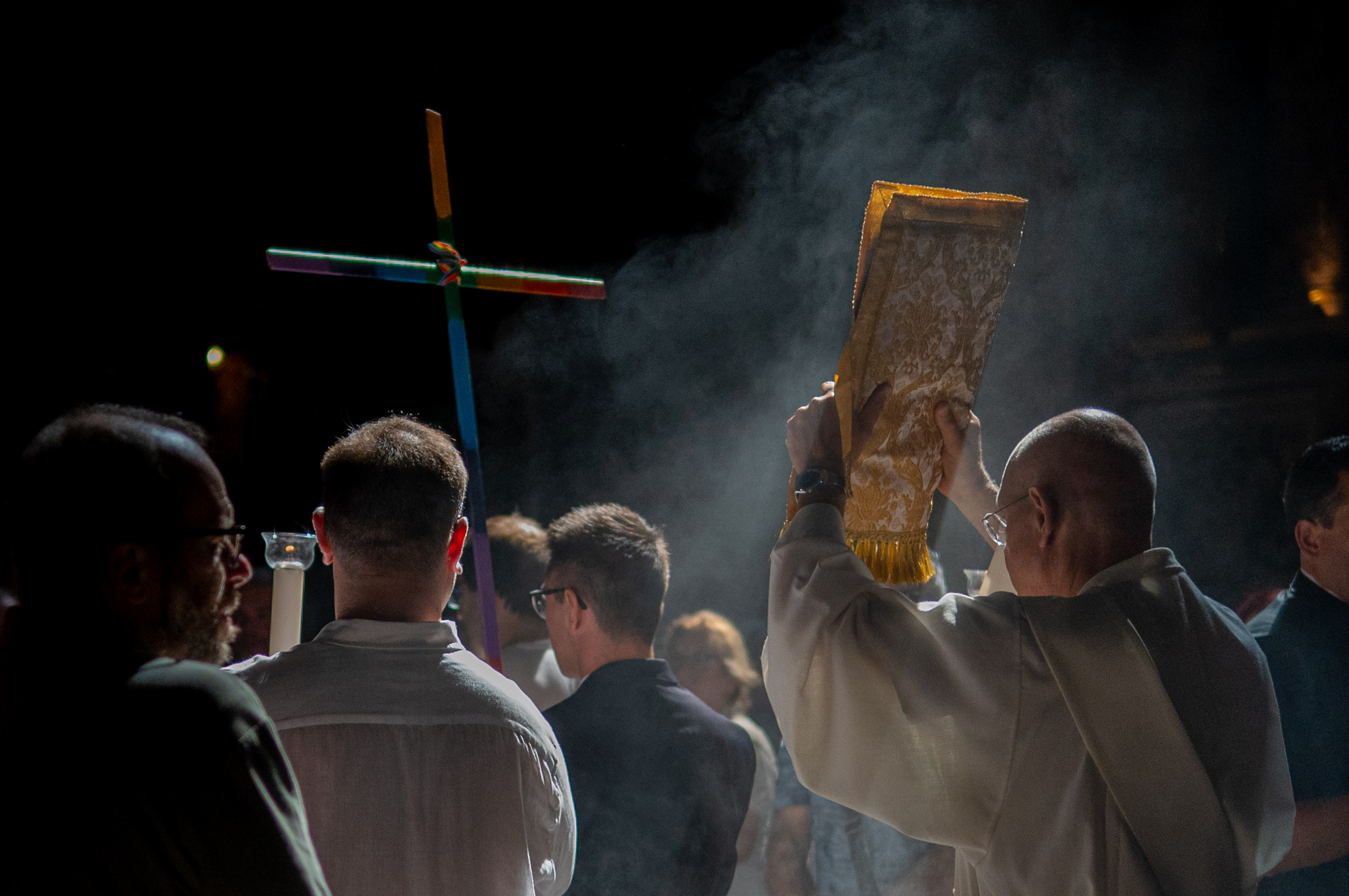 The vice-president of the Italian Bishops Conference, Francesco Savino, celebrated Mass with the pilgrims at a packed Chiesa del Gesù church and spoke of including Catholics from minority groups.