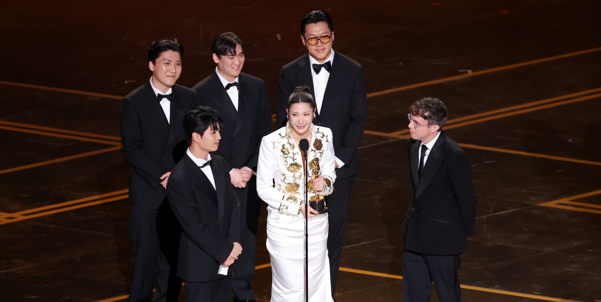 After presenter Lionel Ritchie announced “Golden” as the winner, the track’s songwriters EJAE, Mark Sonnenblick, Teddy Park, IDO (YUHAN, ZHUN, and NHD), and 24 (Jeong Hun-seol) arrived on stage to accept the Oscar .